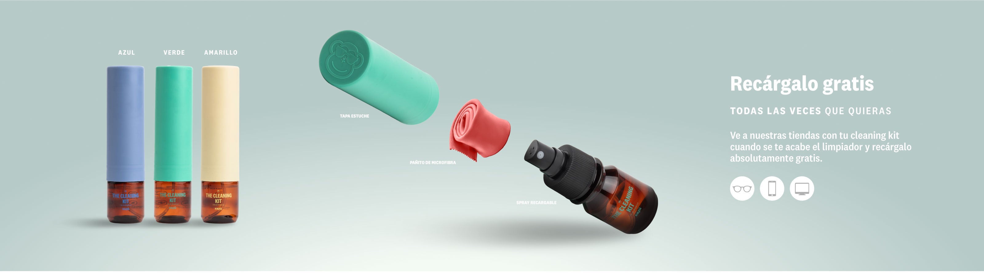 El Kit de limpieza de Sajú incluye un limpiador de 30 mL y un pañito de microfibra para mantener tus anteojos y pantallas impecables. Puedes recargar el limpiador gratis en las tiendas de Sajú, y su tapa permite guardar el pañito, asegurando que siempre esté a mano.